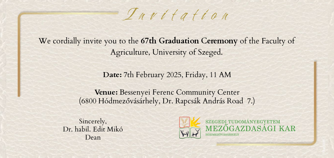 The Faculty of Agriculture of the University of Szeged cordially invites you to the