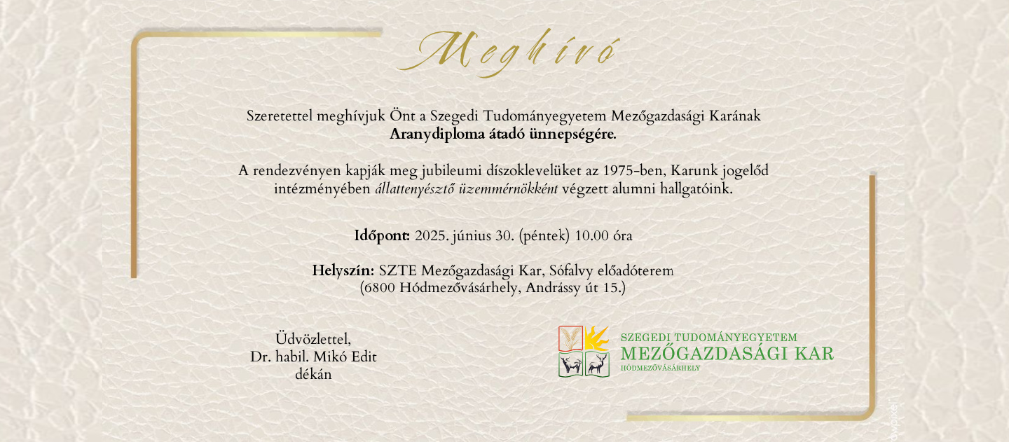 Szeretettel meghívjuk Önt a Szegedi Tudományegyetem Mezőgazdasági Karának